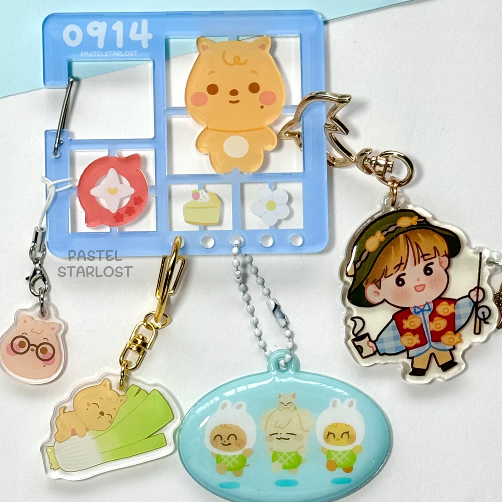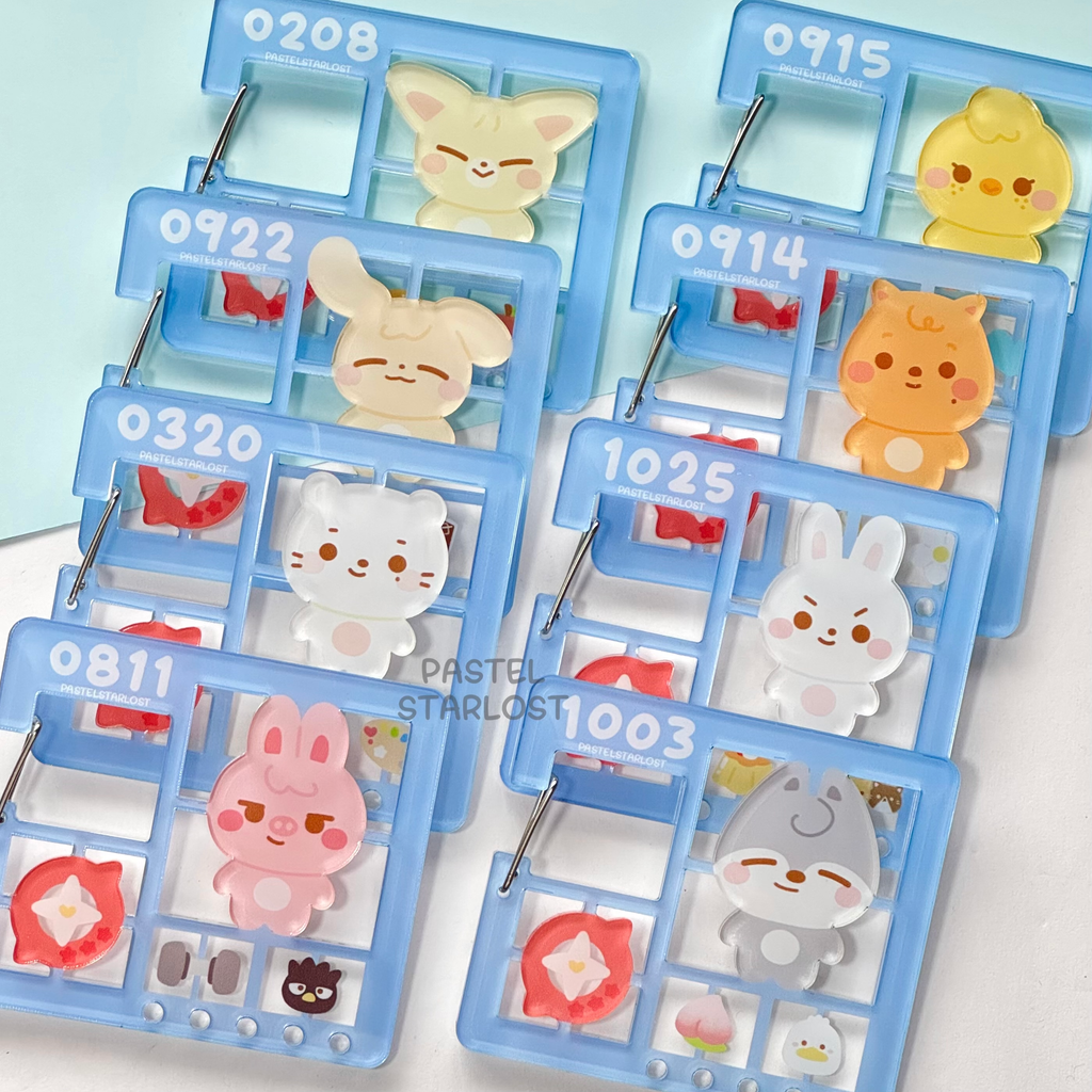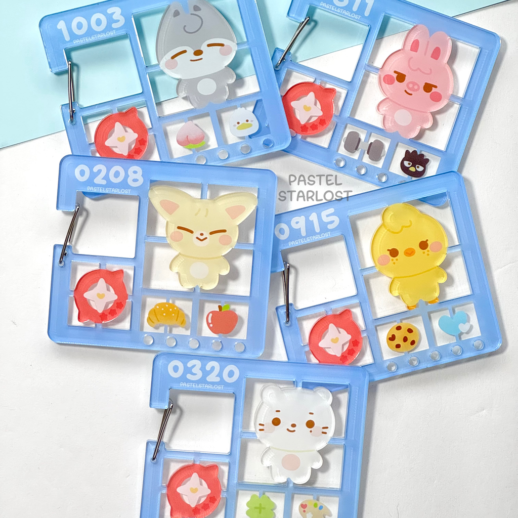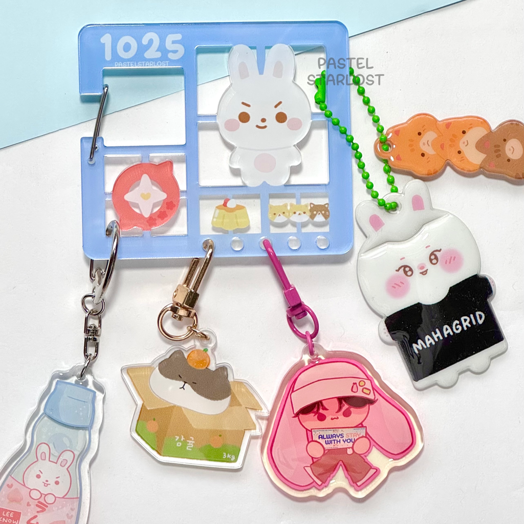 Acrylic carabiners inspired by toy model kits! Each carabiner has 5 holes along with plenty of cutout space for all your trinkets